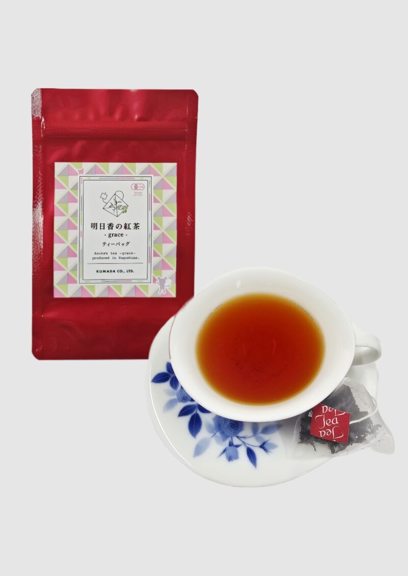 明日香の紅茶 grace(リーフ)をさらに飲みやすくティーバッグにしました。 1袋3gと多めなので、マグカップなど大きめのサイズのカップでも濃くおいしく飲んでいただけます。